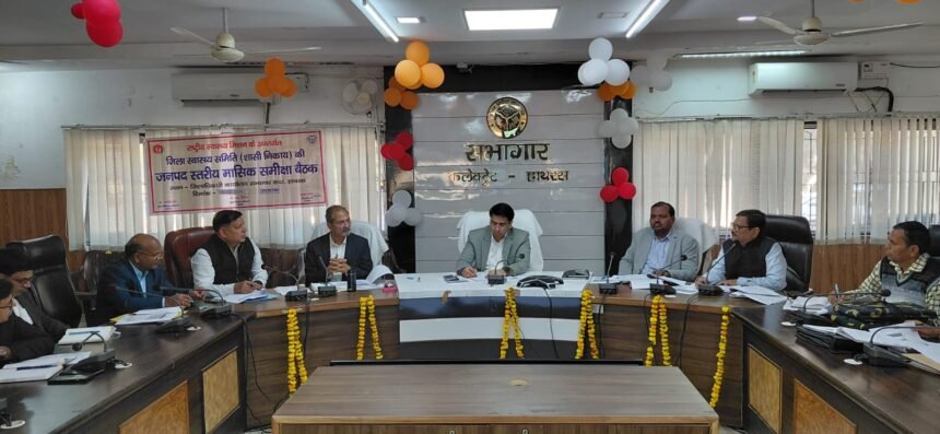 जिला स्वास्थ्य समिति (शासी निकाय) की जनपद स्तरीय मासिक समीक्षा बैठक कलेक्ट्रेट सभागार में जिलाधिकारी अतुल वत्स की अध्यक्षता में आयोजित की गई। बैठक में मरीजों को बेहतर स्वास्थ्य सेवाएं उपलब्ध कराने, बच्चों एवं गर्भवती महिलाओं के शत-प्रतिशत नियमित टीकाकरण तथा विभिन्न राष्ट्रीय स्वास्थ्य कार्यक्रमों की प्रगति की समीक्षा की गई।